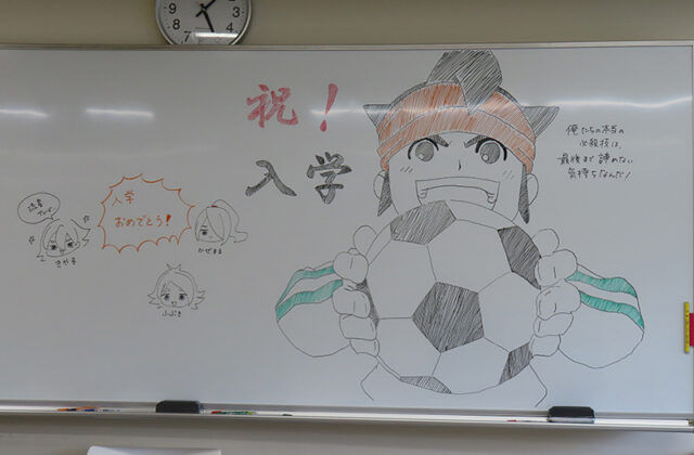 ホワイトボードアートで新入生をお出迎え!