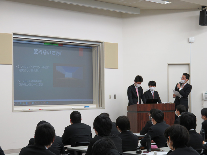 発表を聞いていた1・2年生から「このゲームをプレイしてみたいので、プレイする機会が欲しいです!」との声があがり、3年生のハイレベルな作品に圧倒されたとともに、これからの制作に意欲をみせていました。