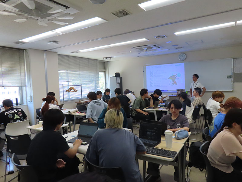 学生たちはチームに分かれてアイデアを出し合い、短時間で企画をまとめ、プレゼンテーションまで行いました。