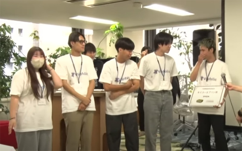 最終発表は、東京・チームラボのオフィスで行われ、審査員や企業の方々の前で堂々とプレゼンを披露。その結果、3名とも素晴らしい評価を受け、見事に入賞を果たしました!