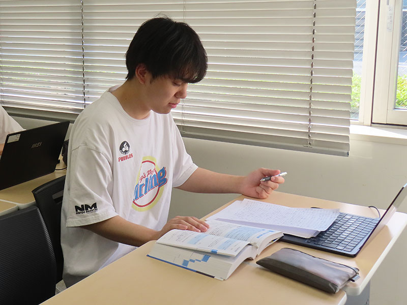 参考書を手にした学生の表情は真剣そのもの。