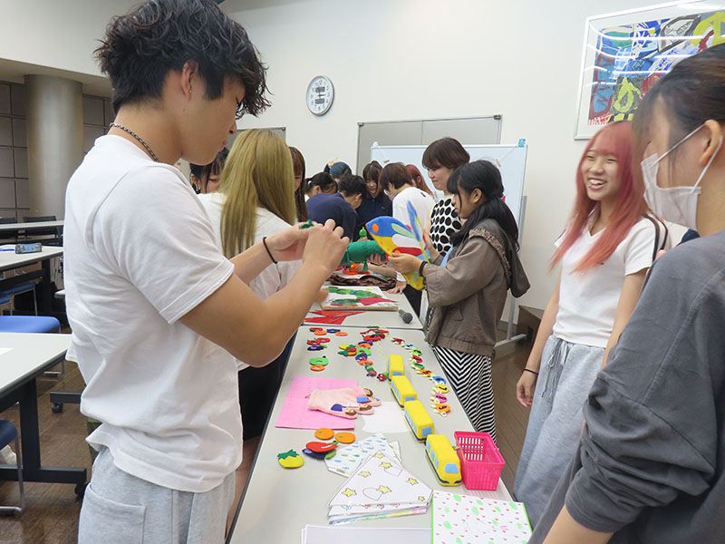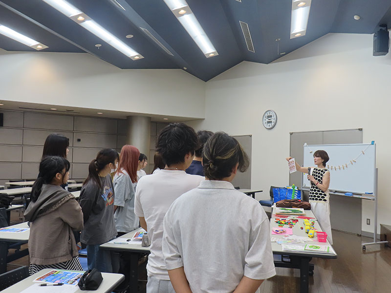 セミナーの最後には、施設で実際に使用されている支援教材の紹介もあり、学生たちはそれらを手に取って体験することができました。