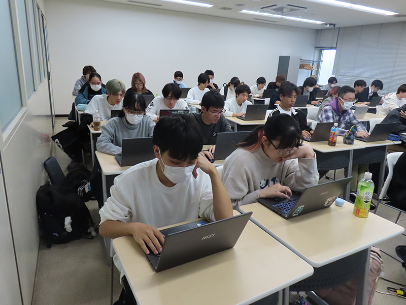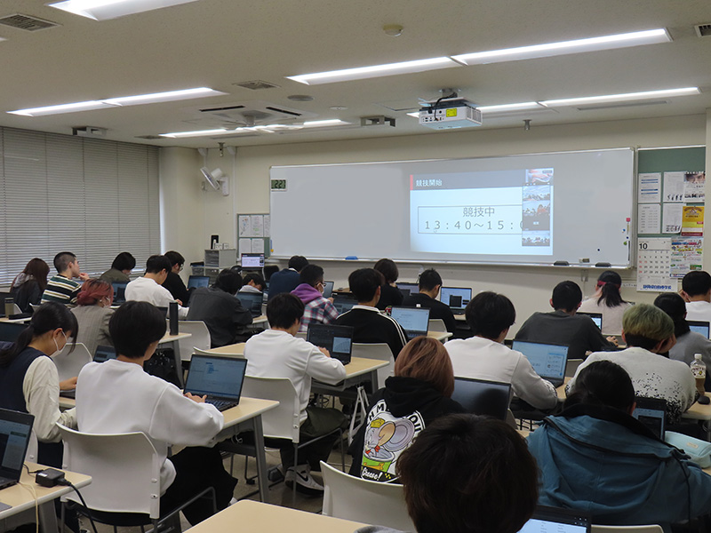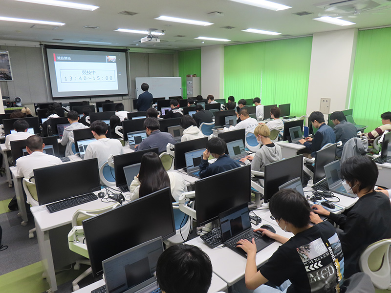 開会宣言のもと、みらい情報科・コンピュータ科・ゲームクリエイト科から多くの学生が参加し、いよいよ競技スタート!