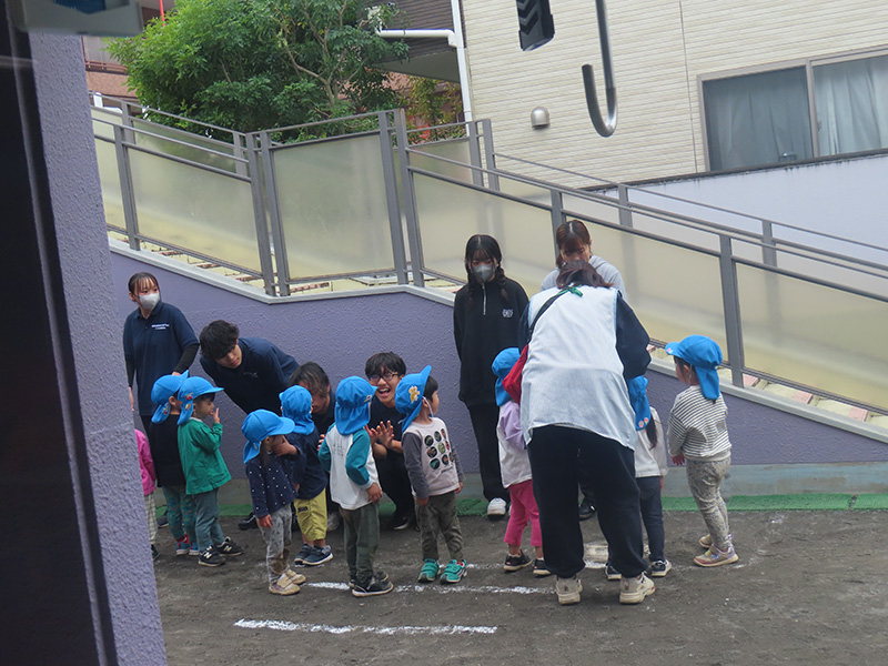 初めは少し緊張していた学生たちも、時間が経つにつれて自然と笑顔になり、園児たちと打ち解けていきました。遊びに積極的に参加する姿や、園児の笑顔に応える学生たちの様子がとても印象的でした。