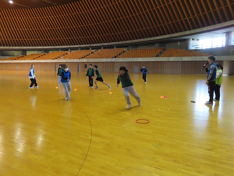 授業では「椅子取りゲーム」や「スポーツ鬼ごっこ」、「ポートボール」をなど体験しました。