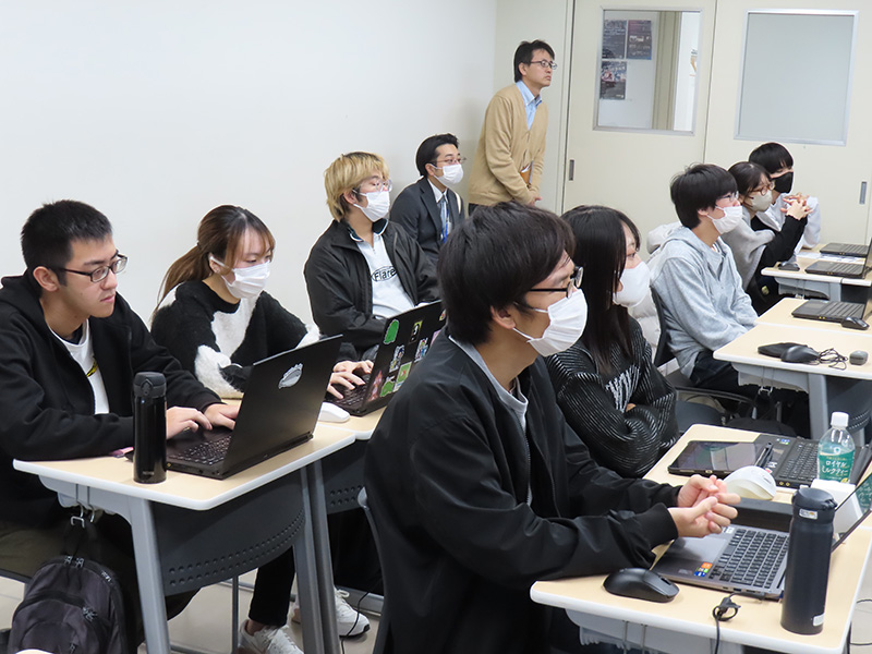 先生からは今後の制作に向けたアドバイスや、課題の整理、進め方についての具体的なアドバイスがあり、 発表後には早速チームで話し合いを始める学生たちの姿も見られました。