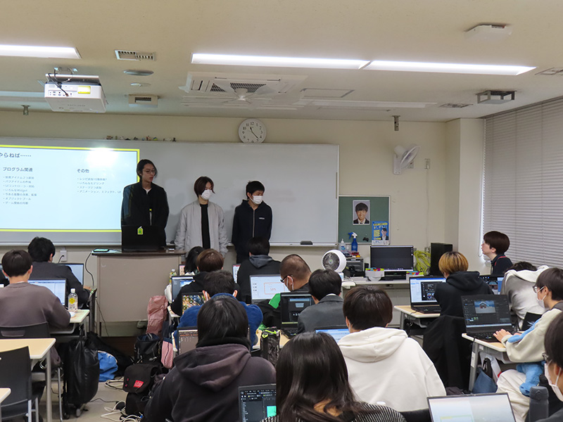 発表では、各チームが現在の進捗状況や今後の制作スケジュールについて報告。