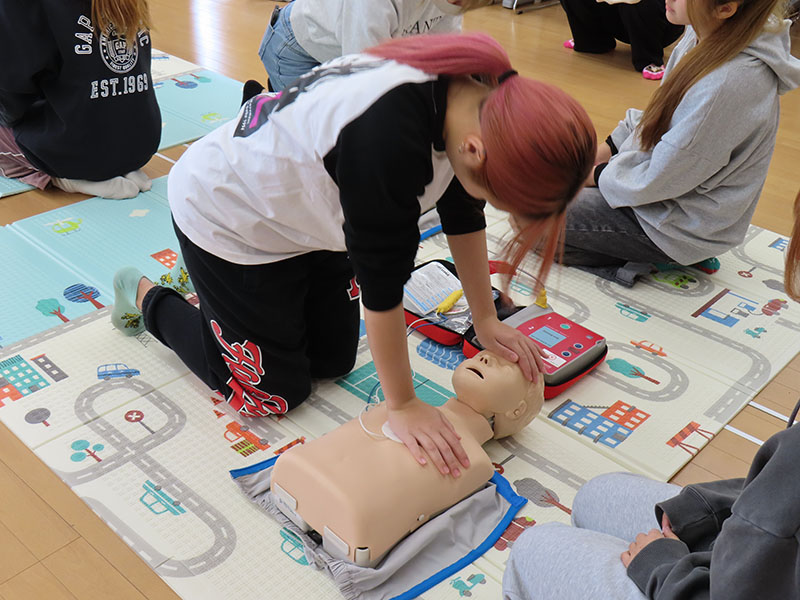 窒息や異物による気道閉塞への対応など、日常で起こりうる場面を想定した実習は学生たちにとって貴重な経験となりました。
