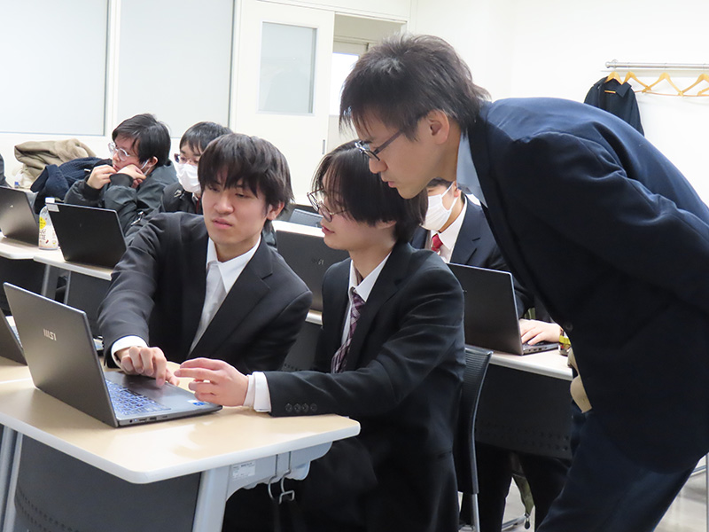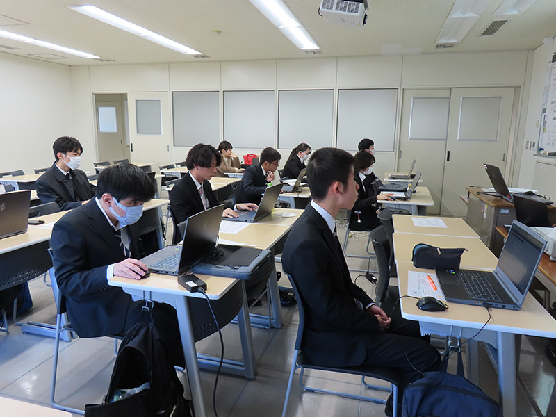 第4回目となる今回は、1月15日に開催される合同企業ガイダンスに向けて、就職ポータルサイトの操作確認を行いました。事前活動の入力や申請方法を動画を使って説明し、学生たちは実際に操作を体験しながらスムーズに申請を終えていました。