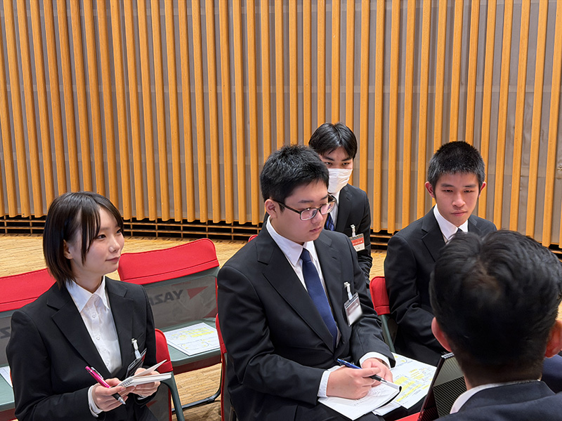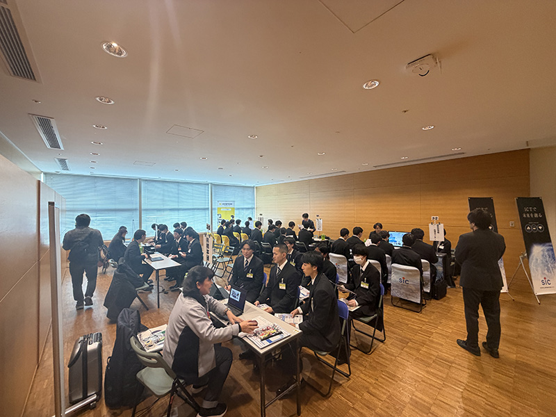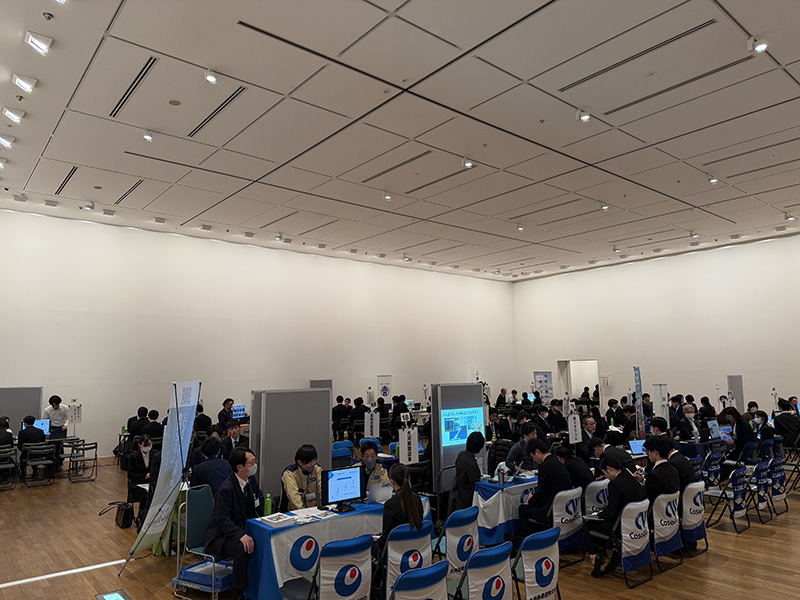 学生たちは各企業のブースを訪問し、会社概要や業務内容について説明を受けながら、熱心にメモを取る姿が見られました。事前に「就活ゼミ」でしっかりと準備をしてきたこともあり、会場では自分から質問をするなど、積極的に行動する様子が印象的でした。