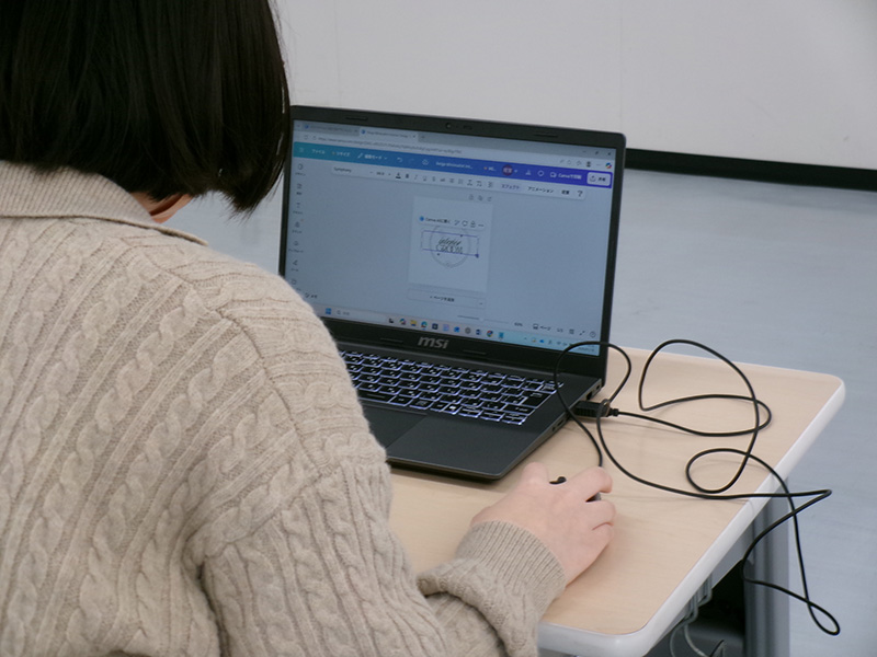 デジタル経営学科では、「企画職体験★オリジナルロゴ&広告デザインでお店をPRしよう!」を実施。