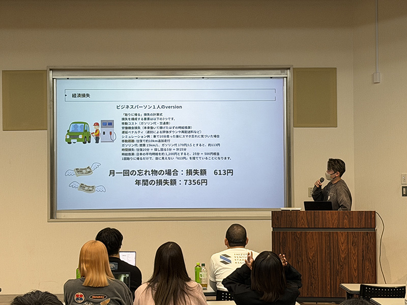 授業の中では、一般社団法人 静岡ベンチャースタートアップ協会理事長 篠原 豊様を講師に迎え、「良いソリューションとは何か」、「ビジネスにおける基本原則」、「課題設定や仮説の立て方」などについて講話をいただきました。
