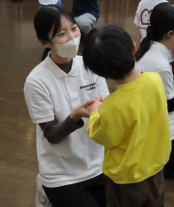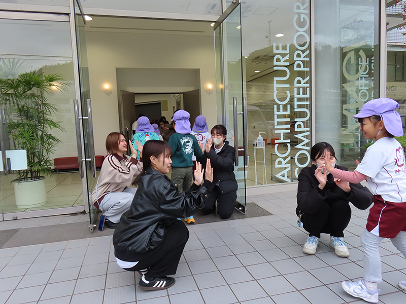 サポート役の学生は、少し離れた位置から全体を見ることで、園児一人ひとりの表情や動き、声掛けのタイミングを落ち着いて確認することができました。前に立って関わるだけでなく、「今、子どもたちはどう感じているか」「次はどんな関わりが必要か」を考えながら見ることで、保育全体の流れをつかむ力を身につけることができました。