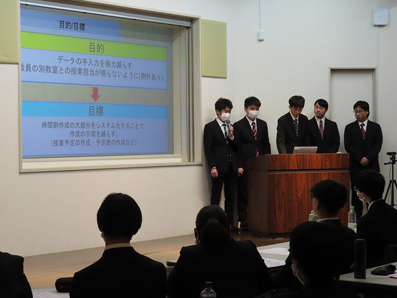 今年度のコンピュータ科の卒業研究発表会には、22社もの内定先企業様にご参加いただき(17社は会場、5社はオンライン)、緊張感のある雰囲気の中で発表が行われました。
