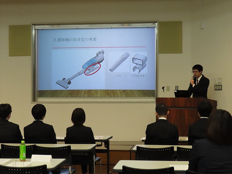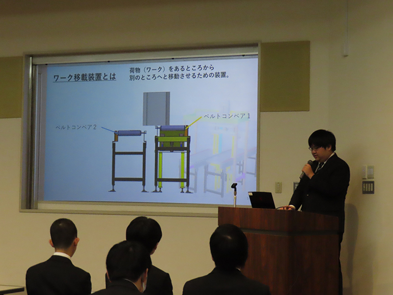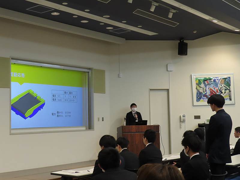質疑応答では「最もモデリングが難しかった部品はどの部品ですか?」といった具体的な質問もあり、学生たちは苦労した点や工夫した点を交えながらしっかりと答えていました。
