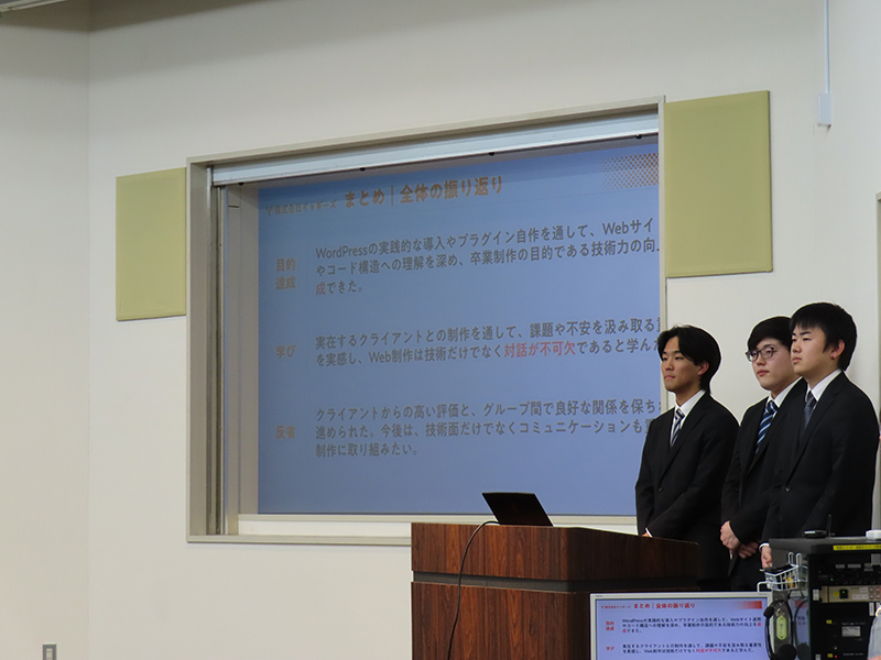 また、企業様とのやり取りを経験した学生からは、「技術だけでなく、相手の課題や不安を汲み取る対話が重要だと実感した」という声も聞かれました。