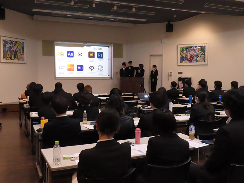 学生たちは、「見る人にどう伝わるかを意識して制作した」や「簡潔で分かりやすいテロップを心がけた」、「チームで制作を進める際の報連相の大切さを学んだ」など、制作に込めたこだわりや学んだことを発表しました。