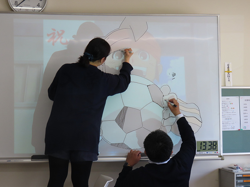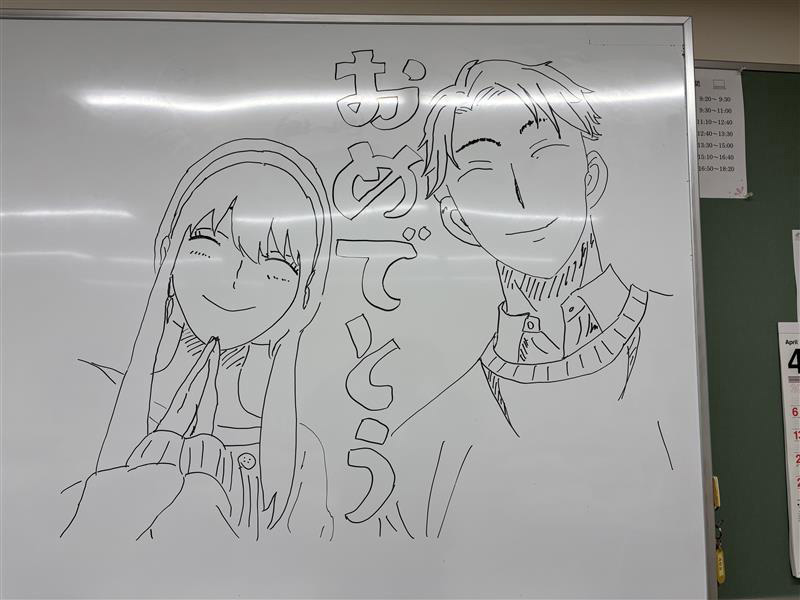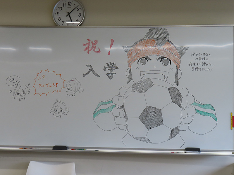 このホワイトボードアートはコンピュータ科で毎年受け継がれてきた取り組みで、在校生から新入生への“エール”でもあり、ささやかな贈り物です。